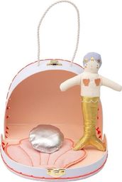 Mini walizka z zabawką z akcesoriami. Walizka wykonana z laminowanej tektury, posiada uchwyt ze skóry ekologicznej oraz metalowe zapięcie. Wymiary: 14,7 x 11 x 5,2 cm.
