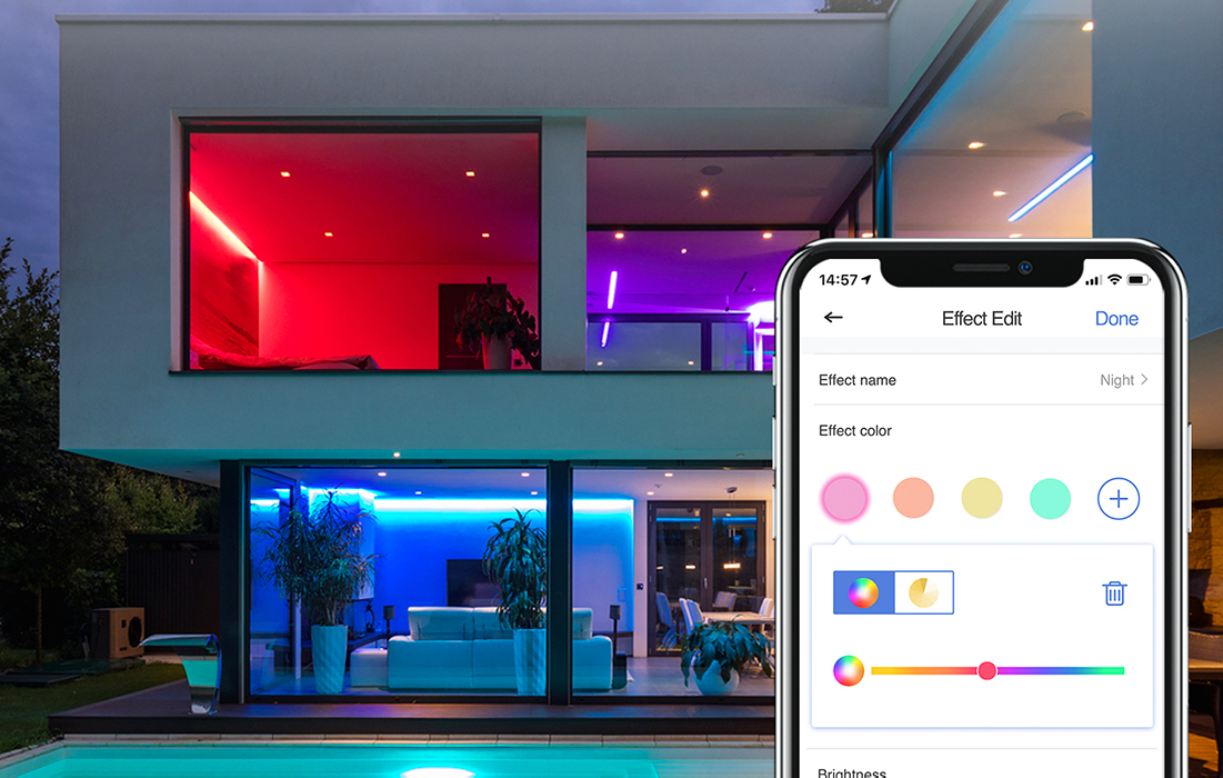 Teraz możesz kontrolować oświetlenie również wtedy, gdy jesteś poza domem. Taśma LED współpracuje z aplikacją Meross, a także z Apple HomeKit, Amazon Alexa, Google Assistant, Samsung SmartThings i IFTTT. Aby włączyć światło, wyłączyć je lub dostosować jego parametry, wystarczy sięgnąć po telefon! Możesz też tworzyć harmonogramy i timery.