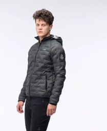 Kurtka huel primaloft® posiada dwie kieszenie boczne, wysoki kołnierz oraz pikowany kaptur.