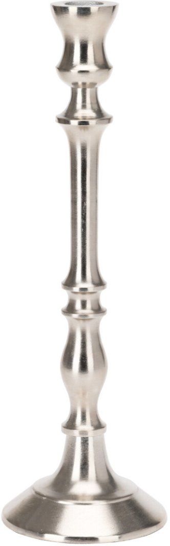 Metalowe świeczniki w eleganckim srebrnym odcieniu, o wysokości 31 cm, stanowią stylowy dodatek do każdego wnętrza. Wykonane z aluminium, ich matowe wykończenie nadaje im nowoczesny i wyrafinowany wygląd. Doskonałe do użytku w domach, restauracjach czy na wyjątkowe okazje, te świeczniki sprawdzą się zarówno w roli dekoracyjnej, jak i praktycznej.