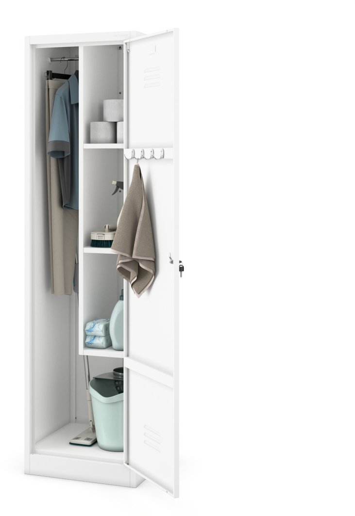 Metalowa szafa gospodarcza AGNES o wymiarach 500 x 1850 x 500 mm to znakomity wybór dla tych, którzy pragną efektywnie zorganizować przestrzeń w pomieszczeniach gospodarczych. Dzięki solidnym półkom oraz dedykowanej przestrzeni na mopa, ta szafa umożliwia wygodne przechowywanie środków czystości i akcesoriów do sprzątania.