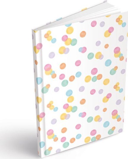 Záznamowa książka MFP w formacie A5, bez linek, z motywem kolorowych kropek. Idealna do różnych kreatywnych i osobistych celów, takich jak rysowanie, szkicowanie, pisanie notatek, prowadzenie dziennika czy tworzenie diagramów i map myśli. Okładki wykonane są z mocnego kartonu pokrytego laminatem, co zapewnia ich trwałość. Dzięki wiązaniu V8, które należy do najtrwalszych, strony pozostaną na swoim miejscu nawet przy częstym użytkowaniu.