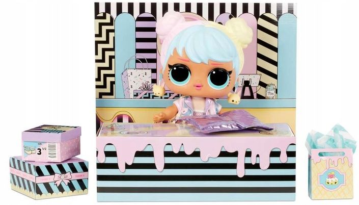 Bon Bon ma pastelowe włosy w odcieniach niebieskiego, różowego i żółtego, spięte w dwa koczki. Ubrana jest w holograficzny kostium. Dołączone zostały do niej buciki niespodzianka, modne akcesoria niespodzianki oraz elementy niespodzianki, które można wymieniać z innymi lalkami tej serii! Pomóż Bon Bon rozpakować jej prezenty na wideo!