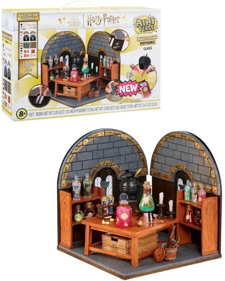 Harry Potter dołączył do Miniverse MGA! Nowy zestaw DIY Stwórz klasę minieliksirów zawiera miniaturowe repliki przedmiotów, z których możesz budować, tworzyć, ustawiać i wystawiać! Każdy zestaw zawiera ponad 100 elementów z których możesz zbudować miniaturową wersję pomieszczenia z serii filmów o Harrym Potterze!