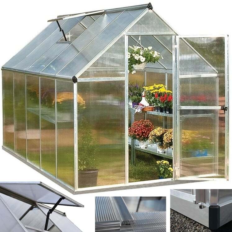 Wykonana z anodowanego aluminium*, szklarnia Palram* łączy estetykę z niezwykłą wytrzymałością. Ściany z podwójnych płyt poliwęglanowych* oferują 82% przepuszczalności światła, co sprzyja zdrowemu wzrostowi roślin. Dodatkowo, 100% ochrona przed promieniowaniem UV zapewnia, że Twoje rośliny będą bezpieczne i w doskonałej kondycji.