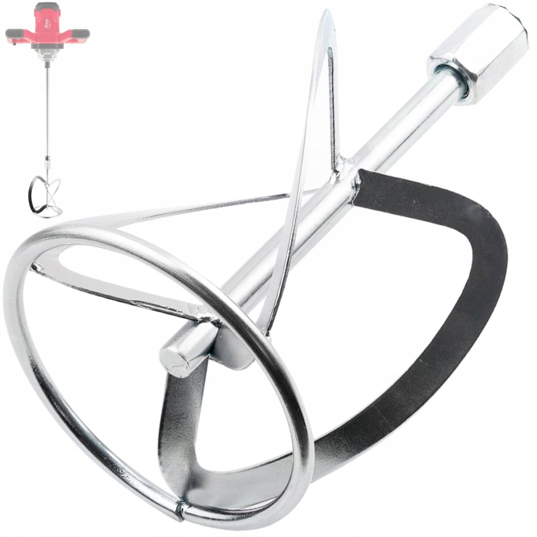 Wytrzymały mieszalnik zapasowy do mieszania zapraw, klejów, farb i mas budowlanych. Wyposażony w gwint M14, pasuje do większości wiertarek i mieszarek dostępnych na rynku. Spiralna konstrukcja z trzema ostrzami i metalową obręczą zapewnia intensywne mieszanie bez rozpryskiwania materiału.