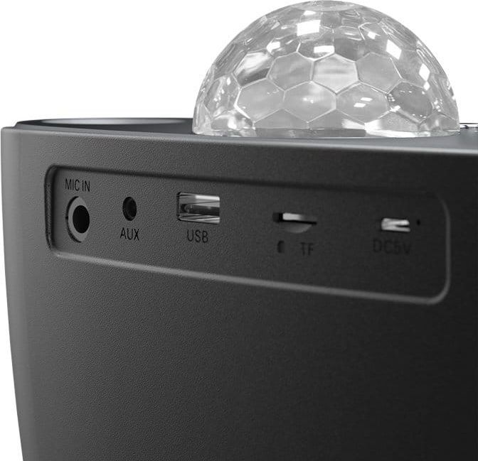 Połączenie między urządzeniami można zyskać dzięki bluetoot, kabel 3,5 mm mini jack (AUX), pendrive lub włożyć kartę pamięci. Można w ten sposób sparować urządzenie przenośne z telefonem lub komputerem. Wybierz utwory z Youtube'a do odtwarzania, a z mikrofonu popłynie podkład muzyczny – bez zniekształceń i opóźnień.