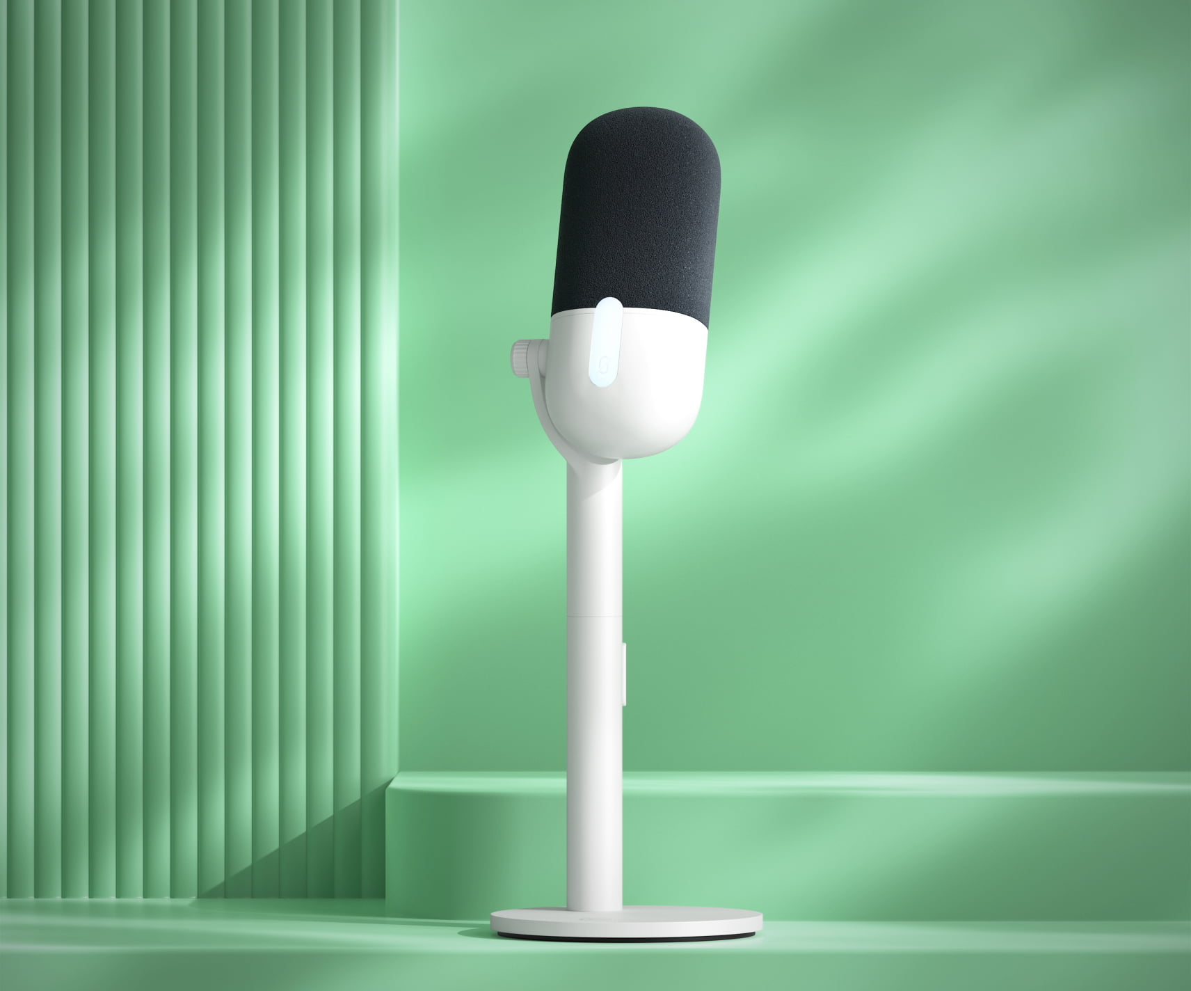 Górna część obudowy została wyposażona w dotykowy przycisk wyciszania, który działa bezgłośnie, nie wprowadzając kliknięć do ścieżki audio. O aktualnym stanie urządzenia informuje wskaźnik LED – kolor czerwony jasno sygnalizuje, że mikrofon jest wyciszony. Z tyłu obudowy znajduje się gniazdo słuchawkowe 3,5 mm mini jack, umożliwiające monitorowanie dźwięku systemowego w czasie rzeczywistym bez opóźnień.