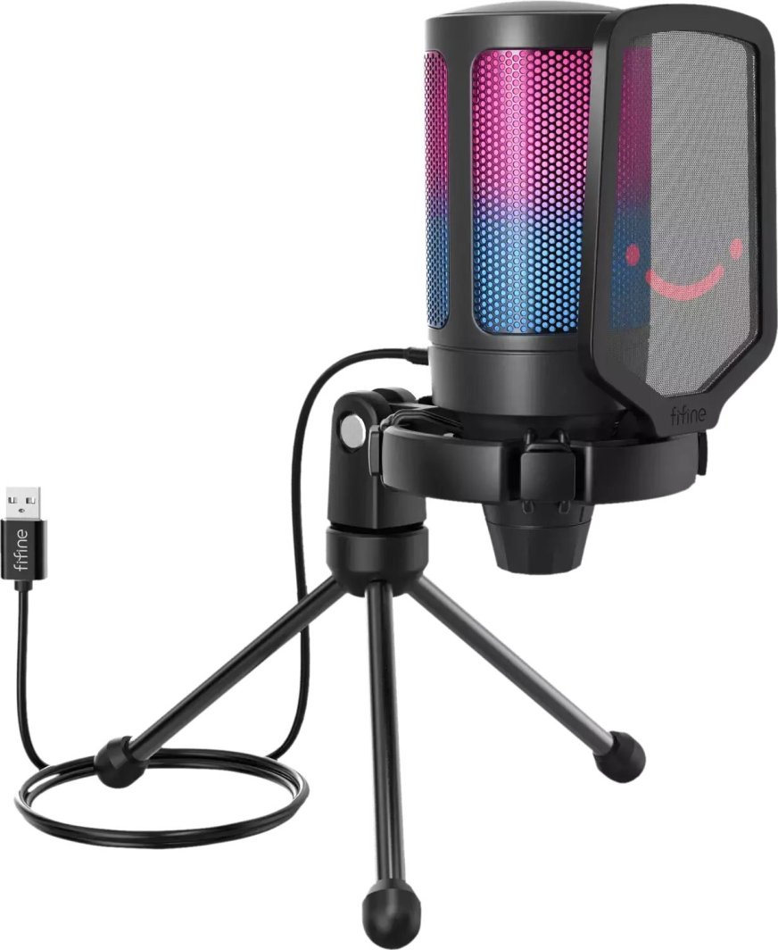 Fifine A6V AmpliGame to wysokiej jakości mikrofon gamingowy ze wszystkimi niezbędnymi akcesoriami, który będzie prawdziwym prezentem dla doświadczonego gracza. Wysokiej jakości dźwięk z głębokimi basami i czystymi wysokimi tonami; wygodny pantograf; imponujące podświetlenie RGB; odłączany pop-filtr. Mikrofon jest kompatybilny z systemami Windows, Mac i konsolami PlayStation. Port USB znajduje się bezpośrednio za mikrofonem, co ułatwia podłączenie.