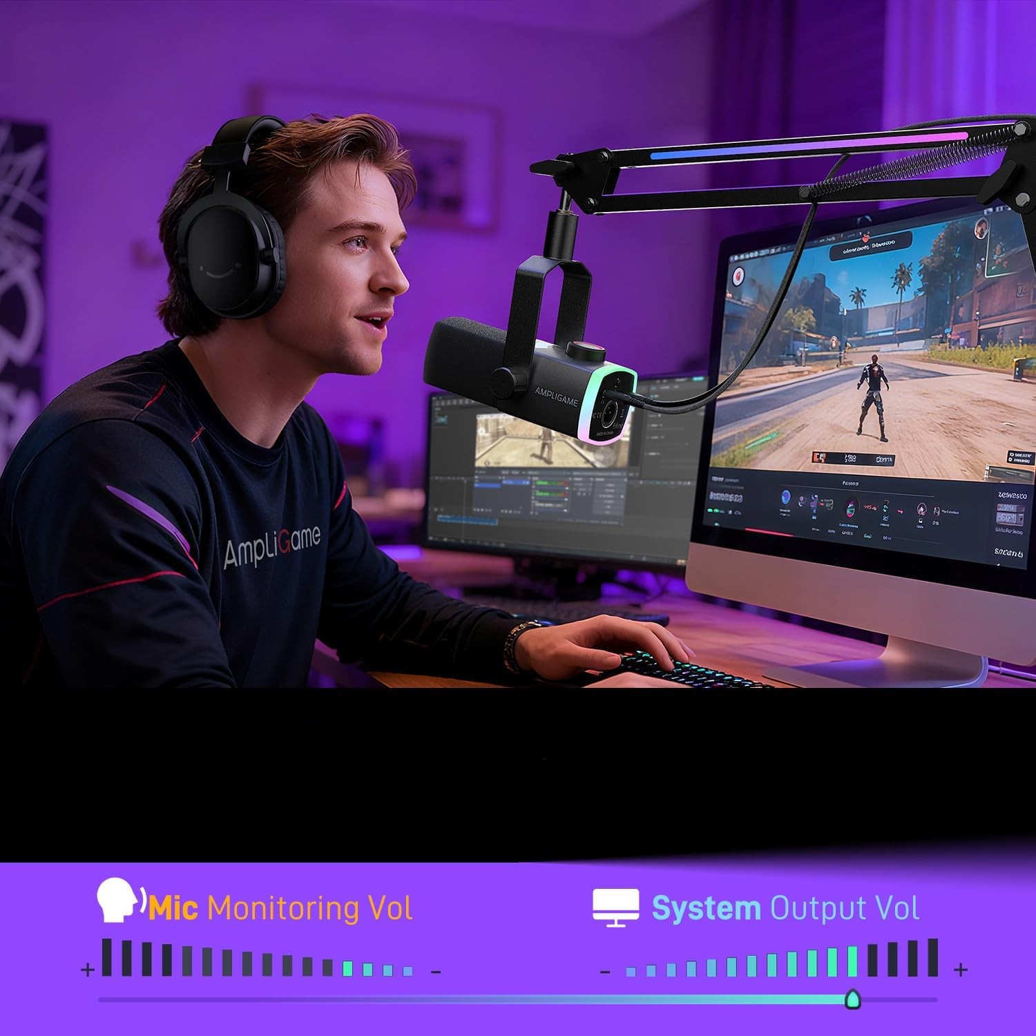 Fifine AM8PROT umożliwia jednoczesne monitorowanie dźwięku z mikrofonu oraz sygnału audio z komputera w czasie rzeczywistym. Wielofunkcyjne pokrętło 3 w 1 pozwala precyzyjnie regulować wzmocnienie mikrofonu, balans miksu oraz głośność słuchawek. To idealne rozwiązanie do streamingu, nagrań Let’s Play i podcastów, gdzie pełna kontrola nad dźwiękiem ma kluczowe znaczenie.