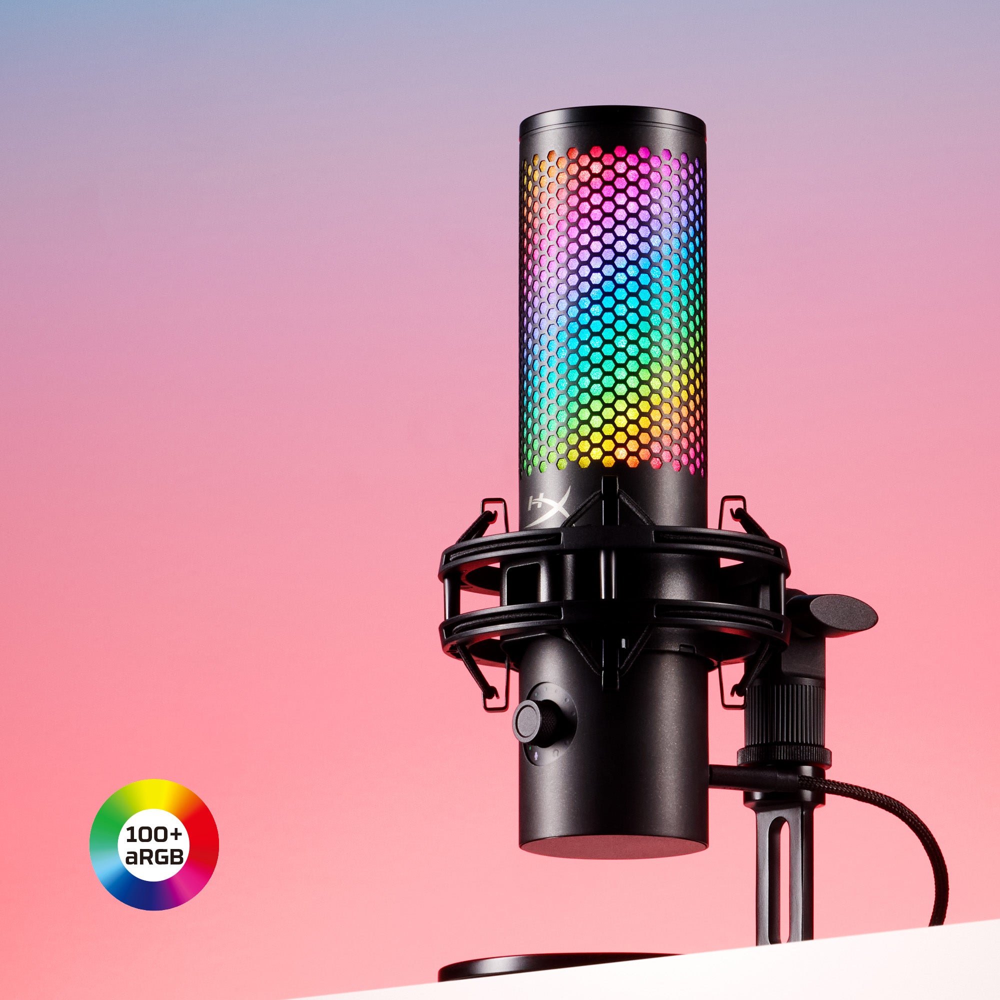 Urządzenie wyposażono w system personalizacji wizualnej oparty na ponad 100 indywidualnie konfigurowalnych diodach LED aRGB. Użytkownik może zarządzać paletą ponad 16 milionów kolorów, tworząc unikalne efekty świetlne zintegrowane z estetyką stanowiska. Zarządzanie warstwą wizualną odbywa się poprzez dedykowane oprogramowanie HyperX NGENUITY, które pozwala na precyzyjne dopasowanie animacji i kolorystyki.