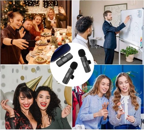 Mikrofon krawatowy 2x nadajnik + odbiornik bezprzewodowy do IPHONE IOS 2szt