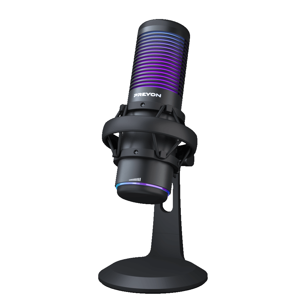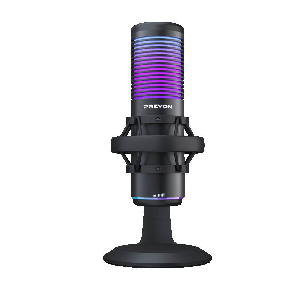 PREYON Osprey Scream - kardioidalna kierunkowość, przycisk wyciszenia, pokrętła regulacji głośności, podświetlenie RGB i wejście mini jack 3,5mm. Odpowiedni zarówno dla graczy, jak i streamerów, oferujący wysoką jakość dźwięku i solidność wykonania.