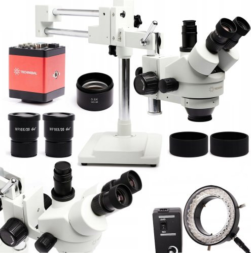 Mikroskop Trinokularowy Stereoskopowy 10HW Kamera FULL HD Soczewka Zestaw