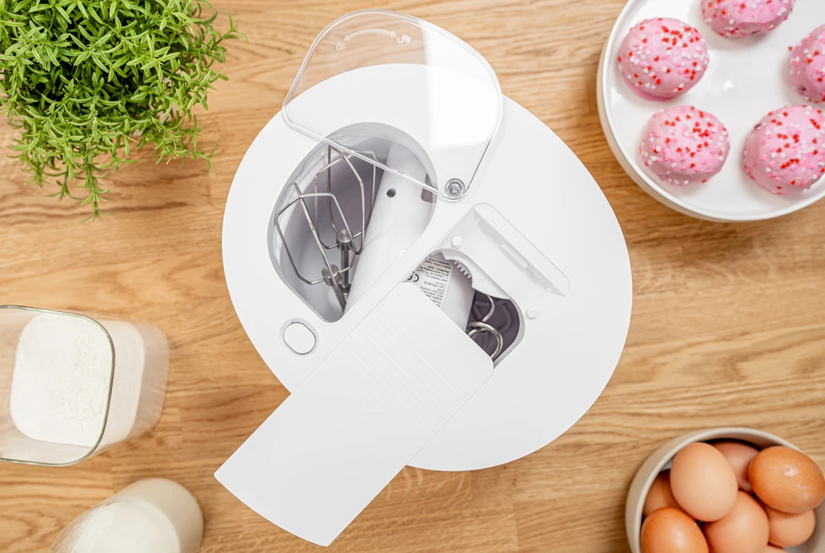 Kompaktowy rozmiar robota kuchennego sprawia, że idealnie wpasuje się w każdą kuchnię, nie zajmując cennej przestrzeni na blacie. Dzięki przemyślanej konstrukcji urządzenie jest łatwe w przechowywaniu, a jednocześnie oferuje pełną funkcjonalność do mieszania, ubijania i wyrabiania ciasta. To doskonałe połączenie wygody i wydajności w jednym urządzeniu.