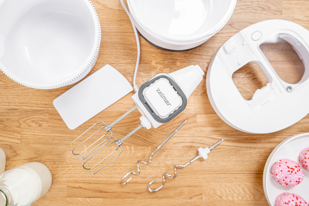 Zestaw akcesoriów zawiera dwie końcówki do ubijania, które doskonale napowietrzają piany i kremy, zapewniając im lekką i puszystą konsystencję. Dwa haki do ciasta ułatwiają wyrabianie gęstych mas, takich jak ciasto drożdżowe czy chlebowe, bez wysiłku. Dodatkowo szpatułka pozwala na wygodne zgarnianie składników, zapewniając maksymalne wykorzystanie masy i czystość misy.