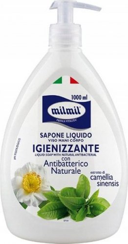 MIL MIL MYDŁO W PŁYNIE ANTYBAKTERYJNE 1000 ML MYDŁO W PŁYNIE Z NATURALNYM EKSTRAKTEM ANTYBAKTERYJNYM Z CAMELLIA SINENSIS Formuła o fizjologicznym pH i naturalnym działaniu antybakteryjnym, wykazuje zrównoważone działanie przeciw drobnoustrojom i bakteriom, zapewniając codzienną higienę skóry. Produkt odpowiedni dla całej rodziny (od 3 roku życia).