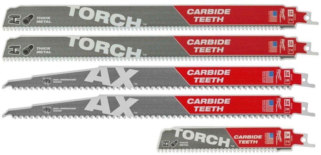 Zestaw zawiera pięć brzeszczotów wykonanych z węglika, w tym: