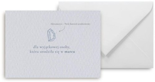 Mini kartka urodzinowa "Urodziny marzec" to elegancki wybór, który doskonale podkreśli wyjątkowość solenizanta. Subtelny akcent akwamarynu, symbolizujący odwagę i szczerość, nada Twoim życzeniom szczególne znaczenie. Idealna na każdą okazję, pozwala na wyrażenie najpiękniejszych emocji w wyjątkowy sposób.