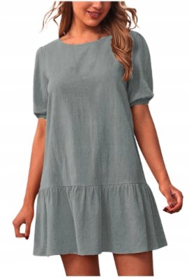 Mini sukienka damska z krótkim rękawem i okrągłym dekoltem