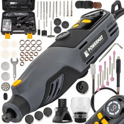 W zestawie znajduje się mini szlifierka Powermat PM-MST-200T oraz elastyczny wałek, prowadnica, osłona, różnorodne tarcze, frezy, wiertła i inne akcesoria. Taki zestaw czyni to narzędzie kompletnym rozwiązaniem do obróbki różnych materiałów.