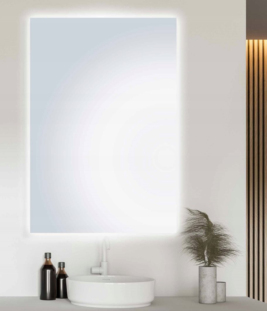 Lustro Enlighted LED Luna o wymiarach 60x80 cm to nowoczesny element wystroju wnętrz, który harmonijnie łączy funkcjonalność z estetyką. Produkt stworzony przez uznaną firmę B.D. Art wyróżnia się prostokątnym kształtem z zaokrąglonymi rogami, co nadaje mu elegancki i współczesny wygląd, idealnie wpisujący się w aktualne trendy aranżacyjne.