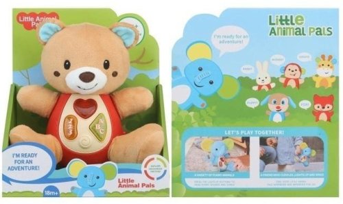 Grafiki na opakowaniu sugerują interakcje z innymi zwierzętami z serii "Little Animal Pals", co może inspirować dzieci do tworzenia kreatywnych opowieści oraz rozwijania empatii. Miś staje się nie tylko zabawką, ale również narzędziem do nauki i odkrywania świata.