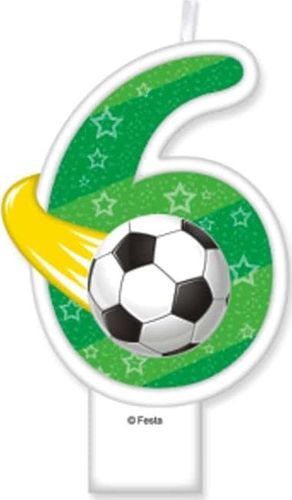Świeczka cyferka 6 w motywie Piłka Nożna na urodziny. Rozmiar świeczki: 8 cm
