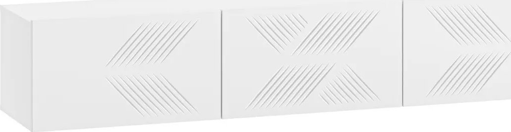 Minimalistyczna szafka wisząca RTV KLARA z podnośnikami gazowymi Szafka wisząca RTV KLARA to element kolekcji mebli, które powstały z myślą o wyposażeniu salonu w piękne i funkcjonalne meble. Ta polskiej produkcji szafka pod telewizor podobnie, jak pozostałe bryły z kolekcji wyróżnia się atrakcyjnym frezem znajdującym się na frontach mebla. Korpus szafki RTV zrobiony został z płyty laminowanej wysokiej jakości cechującej się dużą odpornością na uszkodzenia mechaniczne, wysoką temperaturę oraz wilgoć. Fronty natomiast wykonane są z płyty MDF o białej matowej barwie. Krawędzie płyt zabezpieczone są obrzeżami ABS chroniącymi przed zadrapaniami i wilgocią. Jednocześnie zastosowanie obrzeży ABS podnosi estetykę wykończenia mebla. Szafka wisząca RTV KLARA wyposażona jest w trzy szafki, a każda otwierana jest przy pomocy podnośnika gazowego. Wewnątrz z powodzeniem przechowywać można akcesoria do telewizora, konsolę, czy inne niezbędne przedmioty. Cechy produktu produkt polski, praktyczna wisząca szafka pod telewizor do salonu, korpus biały z płyty laminowanej, fronty frezowane z płyty MDF w kolorze biały mat, obrzeża oklejone ABS, szafki wewnątrz o maksymalnym obciążeniu - 5kg, szafki otwierane przy pomocy podnośników gazowych, do samodzielnego montażu, w swojej ofercie posiadamy szeroki wybór mebli pozwalających na kompleksowe wyposażenie mieszkania.