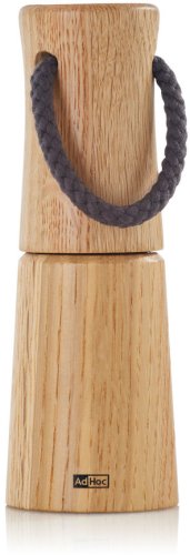 Młynek wykonany z olejowanego drewna dębowego, profilowana obudowa o zaokrąglonych krawędziach przyjemnie leży do dłoni. Bawełniany sznurek zamocowany w pokrywie młynka ułatwia przenoszenie. To udogodnienie docenią w szczególności miłośnicy ogrodowych przyjęć, czy pikników. Jak każdy młynek marki AdHoc, również i ten model, został wyposażony w ceramiczne żarna z płynną regulacją grubości mielenia o szerokim zakresie. Zastosowane w urządzeniu żarna CeraCut® są nie tylko wydajne, ale również odporne na korozję i zużycie. Żarna są obojętne na zapachy, co pozwala cieszyć się za każdym razem czystym smakiem zmielonych przypraw. Dzięki systemowi CAP otwieranie młynka jest łatwe, a napełnienie go przyprawami nie stanowi problemu. Wykorzystany w młynku system PreciseDrive równomiernie podaje przyprawy na żarna, zapewniając tym samym nieprzerwaną ciągłość mielenia aż do wyczerpania zasobnika. Młynek YASO dostępny jest w dwóch rozmiarach: 17cm i 20cm oraz dwóch wersjach drewna olejowanego: jasnej i ciemnej. Aby napełnić młynek należy zdjąć górną część delikatnie zsuwając ją z trzpienia. Zaleca się unikać obracania żarnami podczas wykonywania tej czynności, aby nie doprowadzić do ich uszkodzenia. Po zdjęciu górnej części młynka możliwe jest napełnienie pojemnika na przyprawy. Nie zaleca się ubijania przyprawy wewnątrz pojemnika. Do swobodnego zamknięcia młynka niezbędne jest pozostawienie odpowiedniej ilości miejsca w pojemniku na przyprawy. Szczególną uwagę należy zwracać na czystość przypraw. Pewne zanieczyszczenia mogą doprowadzić do uszkodzenia żaren. Dolne pokrętło służy do regulacji grubości mielenia. W celu uzyskania bardziej rozdrobnionej przyprawy należy obracać pokrętłem zgodnie z ruchem wskazówek zegara, a gdy przyprawa powinna być zmielona grubiej należy obracać pokrętłem w przeciwnym kierunku do ruchu wskazówek zegara. Przed przystąpieniem do regulacji konieczne jest sprawdzenie czy pomiędzy żarnami nie zalega przyprawa, mogąca blokować regulację. Uwaga: Nigdy nie miel, jeżeli zbiornik na przyprawy jest pusty, może to doprowadzić do uszkodzenia żaren! Młynek należy czyścić wilgotną, miękka ściereczką. Nigdy nie należy młynka zanurzać w wodzie. Żarna można oczyścić delikatnie szczoteczką. Nie należy myć w zmywarce. Produkt został zaprojektowany przez Roberta Franzhelda. Materiały: naturalne olejowane drewno dębowe, bawełna. Opakowanie: kartonowe pudełko prezentowe.