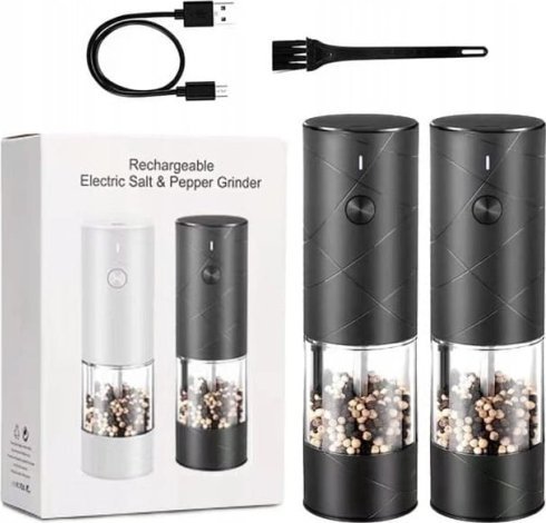Młynek do przypraw Mobilari Zestaw 2 x Młynek Elektryczny na SÓL PIEPRZ przyprawy Szczoteczka Wbudowany Akumulator HG222013
