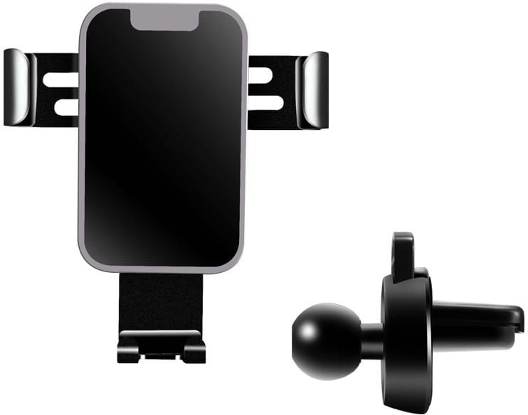 Akcesorium zostało wykonane z wysokiej jakości materiałów (PC + aluminium) i jest przeznaczone do zamontowania w kratce wentylacyjnej auta. Posiada solidne mocowanie, które można używać wielokrotnie. Do tego duże możliwości regulacji (w tym obrotu o 360 stopni) oraz wycięcie pozwalające na podpięcie ładowarki.