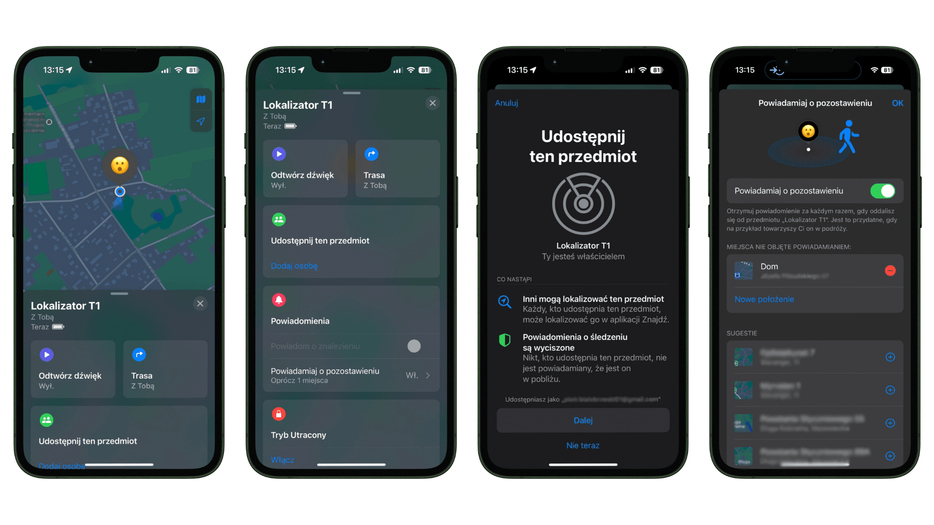 9. Funkcja udostępniania położenia lokalizatora: Dziel się z bliskimi osobami położeniem Twojego przedmiotu w aplikacji mobilnej.