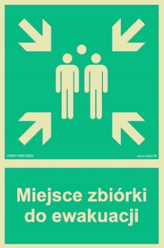 Opis: Prezentujemy znak "Miejsce Zbiórki do Ewakuacji", przeznaczony do oznaczania punktów zbiórki podczas sytuacji zagrożenia. Dzięki wyraźnemu oznakowaniu, osoby przebywające w budynku mogą szybko i bezpiecznie zgromadzić się w wyznaczonym miejscu, co jest kluczowe dla efektywnej ewakuacji. Znak ten jest niezbędny w obiektach użyteczności publicznej, takich jak szkoły, przedszkola, szpitale, urzędy i centra handlowe.