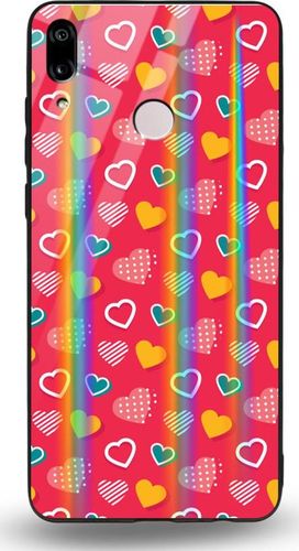 Mojworld Etui na Huawei P20 Lite - Rainbow Case - Lovely hearts - Red background