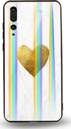 Mojworld Etui na Huawei P20 Pro - Rainbow Case - White marble golden heart