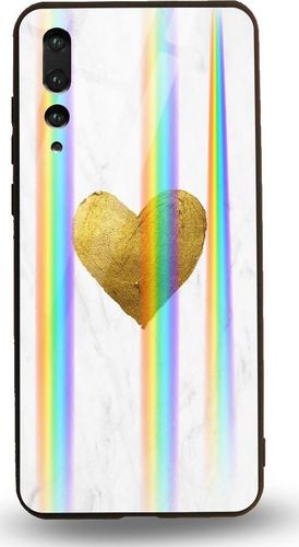 Mojworld Etui na Huawei P20 Pro - Rainbow Case - White marble golden heart