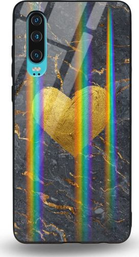 Mojworld Etui na Huawei P30 - Rainbow Case - Black/Gold granite heart