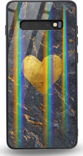 Mojworld Etui na Samsung S10 - Rainbow Case - Black/Gold granite heart