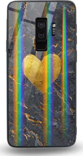 Mojworld Etui na Samsung S9 Plus - Rainbow Case - Black/Gold granite heart