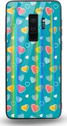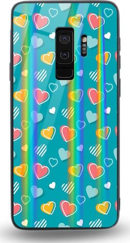 Mojworld Etui na Samsung S9 Plus - Rainbow Case - Lovely hearts - Blue background