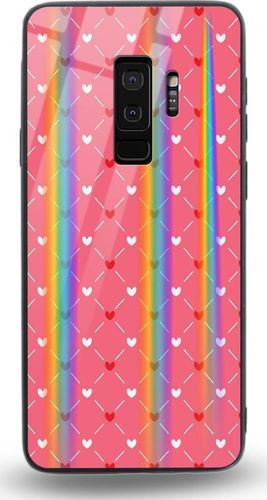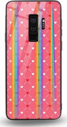 Mojworld Etui na Samsung S9 Plus - Rainbow Case - Small red hearts - pink background