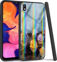 Etui ze szkła hartowanego z efektem luminescencyjnym Rainbow Series Icecream cupcakes to pokrowiec z wykonany ze hartowanego szkła o grubości 2,5 mm. Wyróżnia się dużą odpornością na zarysowania oraz wysoką trwałością nadruku. Dlatego też długo będziesz się cieszył swoją nową obudową. Podczas produkcji zastosowana została najnowsza technologia wycinania szkła, dzięki której jest idealnie dopasowane do kształtu Twojego Samsung Samsung A10 RAINBOW GLASS EFEKT - To niesamowity efekt luminescencyjny powstały w momencie, gdy światło pada na gładką powierzchnię naszej szklanej obudowy Rainbow. Tworząc wybuch kolorów pryzmatu, który nadaje naszej obudowie niesowity efekt tęczy. Szklane etui zapewnia pełen komfort z użytkowania telefonu pod względem funkcjonalnym. Pozwala też cieszyć się jego eleganckim wyglądem. Etui z antypoślizgową ramką typu shock-proof Pokrowiec posiada zakryte przyciski oraz wszystkie niezbędne wycięcia na porty ładowania i aparat. Dzięki czemu jest w pełni funkcjonalne. Jest to etui z ramką typu shockproof, która chroni ranty telefonu. W pełni zabezpiecza go przed wstrząsem podczas upadku z wysokości. Dużą zaletą jest też unikalny, innowacyjny i ulepszony antypoślizgowy środek pokrowca. Obudowa posiada również rant ochronny wystający delikatnie ponad krawędź wyświetlacza. Oferujemy 11 różnych kolorów ramek do wyboru (czarny, czerwony, ciemny róż, róż, żółty, niebieski, fiolet, matcha zielony, zielony wojskowy, pomarańczowy, szary). Dzięki czemu etui Samsung Samsung A10 będzie wyglądało unikatowo. Wystarczy tak niewiele, żeby zyskać tak dużo :)