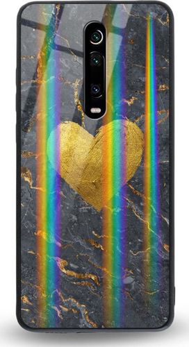 Mojworld Etui na Xiaomi MI 9T - Rainbow Case - Black/Gold granite heart