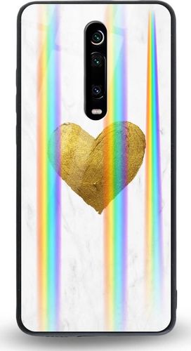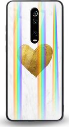 Mojworld Etui na Xiaomi MI 9T - Rainbow Case - White marble golden heart
