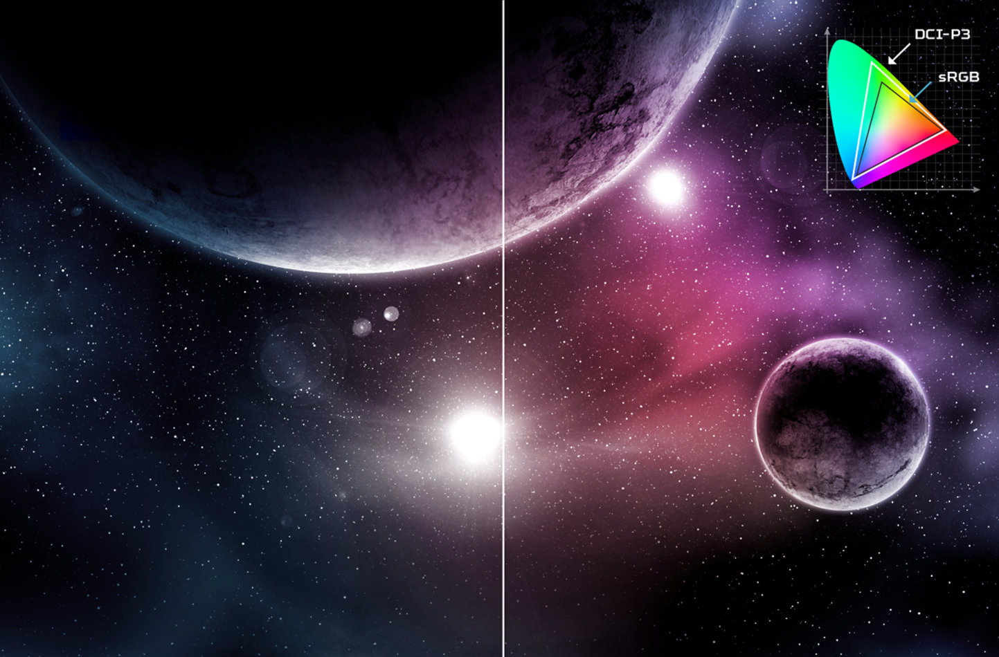 Niezależnie od tego, czy wybierasz zdjęcia, czy montujesz filmy 90-procentowe pokrycie gamy DCI-P3 z 1,07 miliarda kolorów przekłada się na bardziej precyzyjnie odwzorowane barwy oraz poprawioną głębię kolorów, uwydatniając szczegóły Twojej pracy.