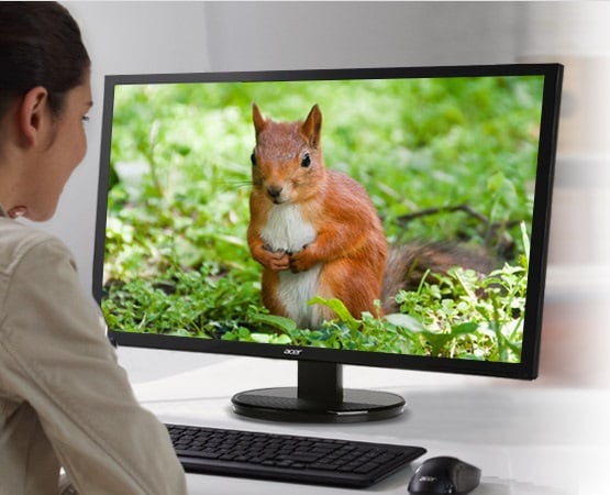 Dzięki dużej liczbie szczegółów gwarantowanych przez ekran o podświetlaniu LED i rozdzielczości Full HD zarówno praca, jak i rozrywka sprawiają niesamowitą przyjemność. Ponadto funkcja Acer Adaptive Contrast Management zapewnia jeszcze lepsze odwzorowanie barw.