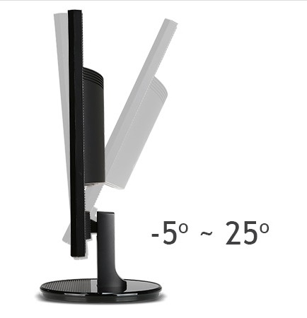 Ergonomiczne podstawki monitorów z serii K2 można pochylić pod kątem od -5 do 25 stopni, co pozwala na optymalizację kątów widzenia.