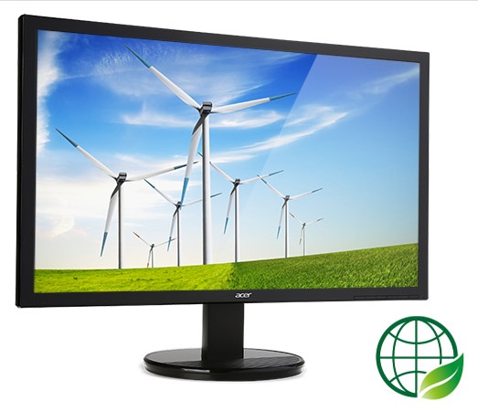 Monitory z serii K2 są bezpieczne dla Ciebie i dla otoczenia. Wykorzystują podświetlenie z pozbawionych rtęci białych diod LED i spełniają wymagania normy ENERGY STAR® 6.0. Wykonane w technologii Acer EcoDisplay ekrany monitorów zostały skryte pod taflą niezawierającego arsenu szkła, co dodatkowo redukuje negatywny wpływ na środowisko naturalne. Ponadto opakowania urządzeń Acer są wykonywane z materiałów nadających się do powtórnego użytku.