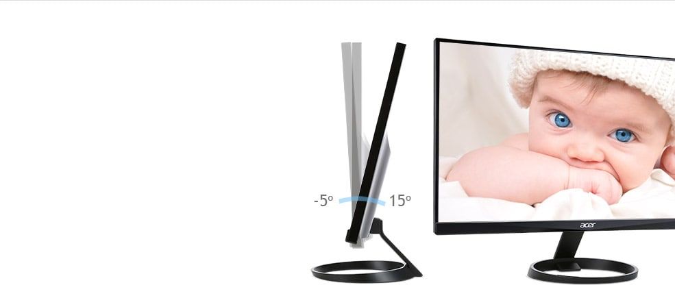 Technologia Acer Flicker-less eliminuje uciążliwe migotania ekranu, a filtr niebieskiego światła chroni oczy przed zmęczeniem. Dodatkowo dzięki technologii Acer ComfyView dokuczliwe odbicia tła są redukowane do minimum. Obraz można również regulować w zakresie od -5° do 15°, co pozwala dobrać optymalny kąt widzenia.